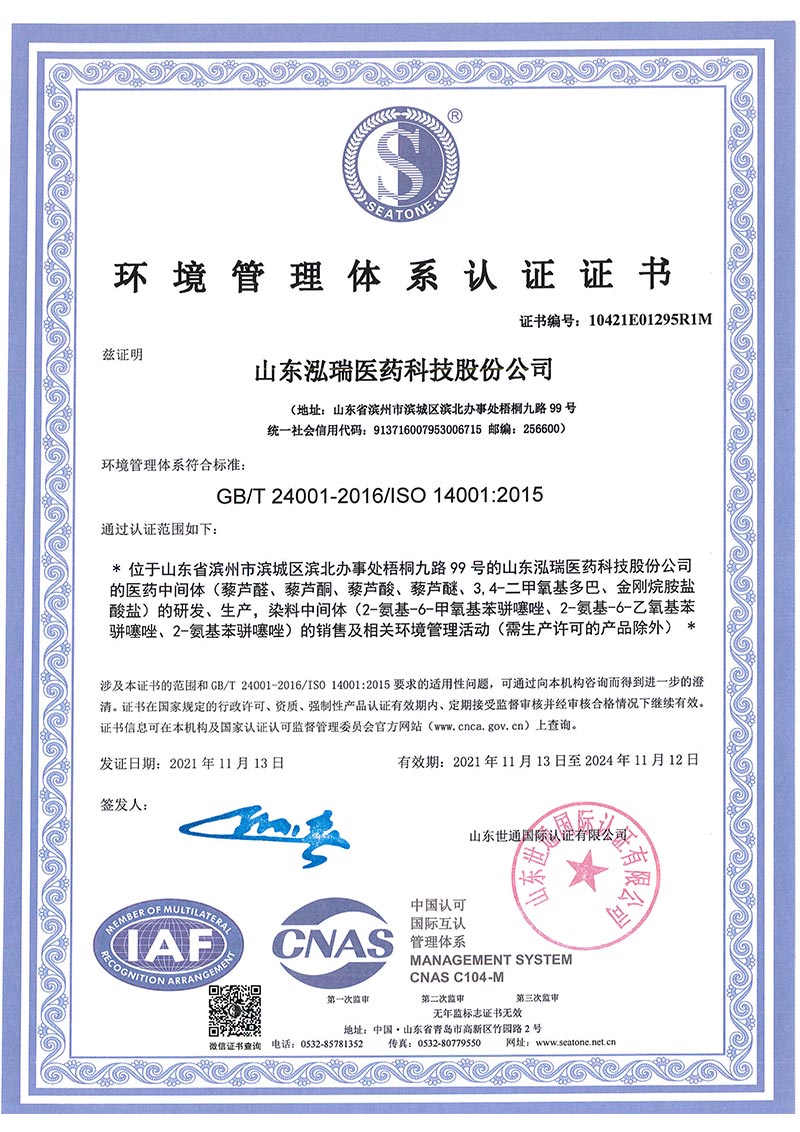 公司位于美麗的黃河三角洲城市山東濱州工業園區,緊臨205國道交通便利,公司成立于2006年,注冊資本2240萬元,占地面積73000平方米,現有員工180余人,公司致力于專業生產醫藥及生物醫藥配套的產品,并提供產品定制以及技術服務,是集研發、生產、營銷為一體的股份制企業。 公司主要生產芳香族苯甲酸系列醫藥中間體:藜蘆醛、藜蘆酮、藜蘆酸、藜蘆醚、鹽酸金剛烷胺、3,4-二甲氧基苯丙氨酸等精細化工品,年產量達3600噸,產品銷往中國、印度、美國以及歐洲、南美等各國家。公司自成立以來非常注重產品的質量保證及控制能力,部分產品通過ICH Q7A審計,先后通過了通過ISO9001國際質量體系認證和ISO14001環境體系認證,保障了公司質量體系和環境體系的持續運行,增加了客戶對我公司產品的信任度,增強了我公司在市場上的競爭能力。公司擁有美國等國際專利4項,36項國內專利,先后與中科院上海有機所、浙江大學、濟南大學等高等院校開展了科研合作,并與多家國內外研發機構進行了多個項目的合作。企業和產品先后獲得了國家高新技術企業、國家“專精特新”小巨人企業、山東省“專精特新”中小企業、山東省節水型企業、山東省知識產權示范培育企業、山東省“一企一技術”研發中心、山...