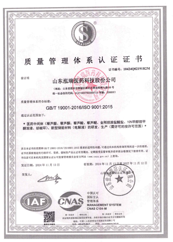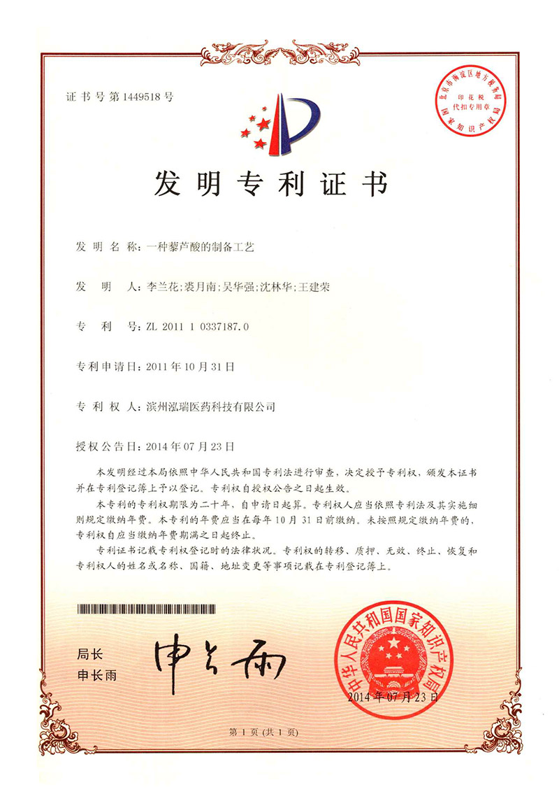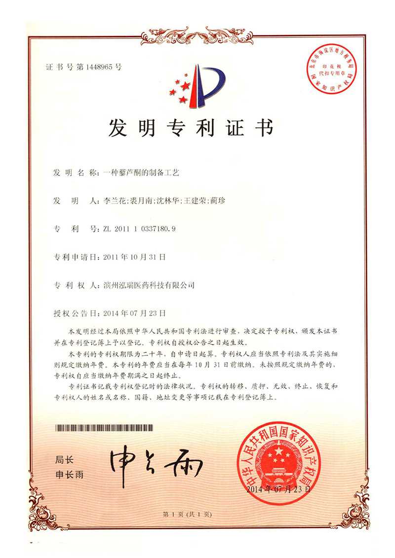 公司主要生產(chǎn)芳香族苯甲酸系列醫(yī)藥中間體:藜蘆醛、藜蘆酮、藜蘆酸、藜蘆醚、鹽酸金剛烷胺、3,4-二甲氧基苯丙氨酸等精細(xì)化工品,年產(chǎn)量達(dá)3600噸,產(chǎn)品銷往中國(guó)、印度、美國(guó)以及歐洲、南美等各國(guó)家。公司自成立以來(lái)非常注重產(chǎn)品的質(zhì)量保證及控制能力,部分產(chǎn)品通過(guò)ICH Q7A審計(jì),先后通過(guò)了通過(guò)ISO9001國(guó)際質(zhì)量體系認(rèn)證和ISO14001環(huán)境體系認(rèn)證,保障了公司質(zhì)量體系和環(huán)境體系的持續(xù)運(yùn)行,增加了客戶對(duì)我公司產(chǎn)品的信任度,增強(qiáng)了我公司在市場(chǎng)上的競(jìng)爭(zhēng)能力。公司擁有美國(guó)等國(guó)際專利4項(xiàng),36項(xiàng)國(guó)內(nèi)專利,先后與中科院上海有機(jī)所、浙江大學(xué)、濟(jì)南大學(xué)等高等院校開(kāi)展了科研合作,并與多家國(guó)內(nèi)外研發(fā)機(jī)構(gòu)進(jìn)行了多個(gè)項(xiàng)目的合作。